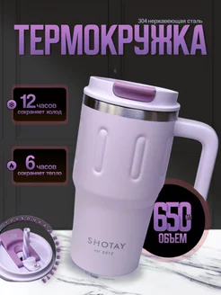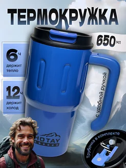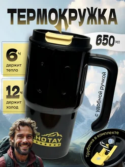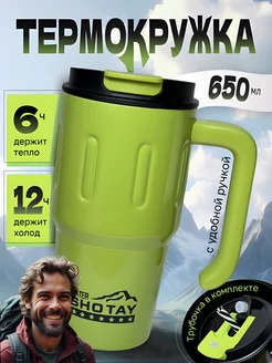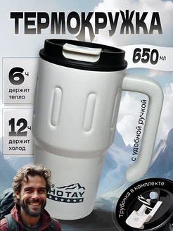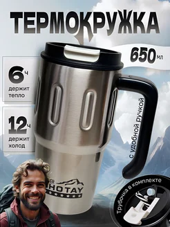 Термокружка с ручкой и с трубочкой, 650 мл, мужская