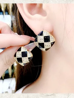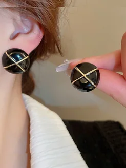 Серьги гвоздики с черной эмалью