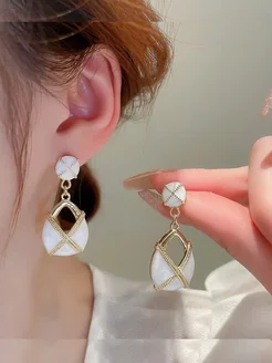 Серьги с эмалью и подвеской капля