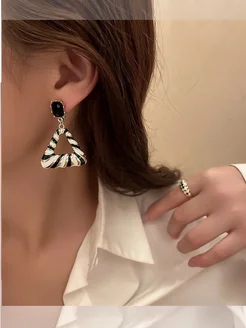 Серьги гвоздики треугольные "Зебра"
