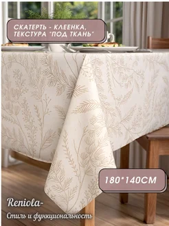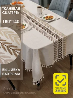 Скатерть тканевая льняная с вышивкой и бахромой 180х140см