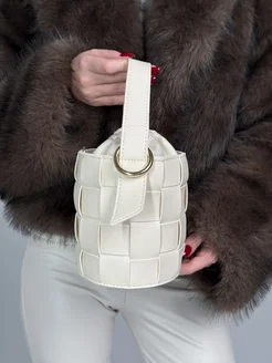 Сумка на плечо ведро белая плетеная в стиле Bottega veneta