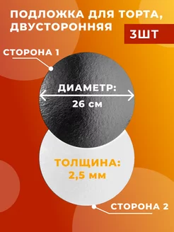 Подложка для торта чёрная белая 3 шт, диаметр 26 см