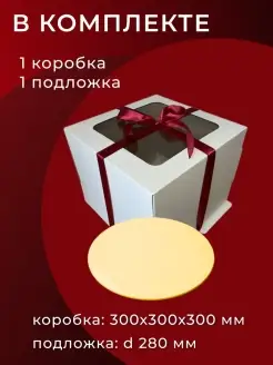Коробка для торта с окном 300х300х250 с подложкой d 28 1 шт