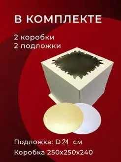 Коробка для торта с окном 250х250х240 подложка d 240 2 шт