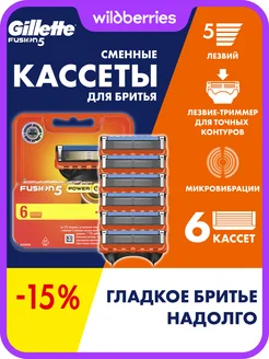 Кассеты для бритья сменные лезвия мужские Fusion 5 Power 6шт