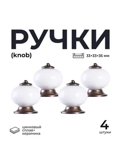 Ручка-кнопка 4 шт с керамической вставкой