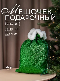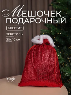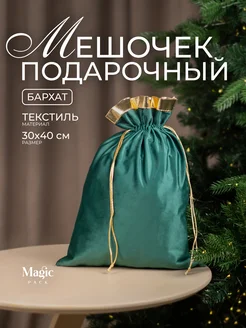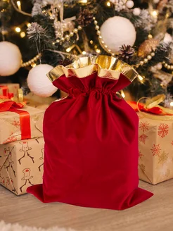 Новогодний тканевый мешочек для подарка под елку 30х40 см