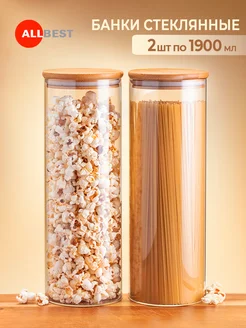 Стеклянная банка с деревянной крышкой 1900 мл, набор 2 шт