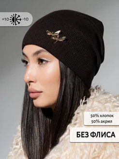 Шапка Бини со стразами и брошью без флиса