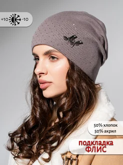 Шапка осенне-весенняя со стразами без флиса