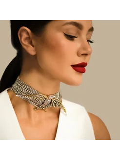Колье с кристаллами и птицей
