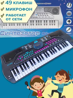 Синтезатор детский для начинающих с микрофоном от сети