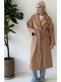 Пальто длинное оверсайз демисезонное с поясом