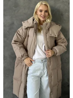 Пуховик зимний с отстегивающимся капюшоном и поясом