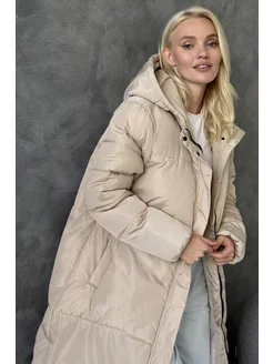 Пуховик зимний с отстегивающимся капюшоном, без пояса