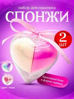 Спонжи для макияжа в футляре "Сердечко" (цвет микс)