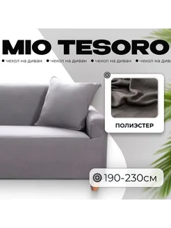 Чехол на диван на резинке с подлокотником серый, 190-230 см