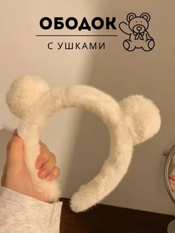 Милый красивый ободок с ушками мишки плюшевый для умывания
