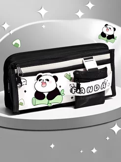 Эстетичный милый пенал панда с молнией школьный
