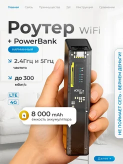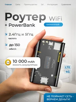 Беспроводной Карманный Роутер Wi-Fi с сим картой PowerBank