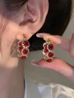 Серьги бижутерия кольца красные розочки
