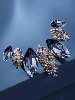 Серьги бижутерия асимметричные длинные с камнями