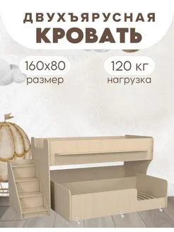 Двухъярусная кровать с ящиками дуб млечный 160 на 80