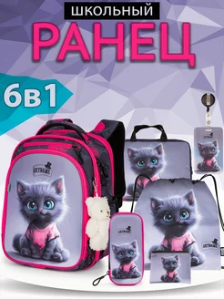 Рюкзак школьный девочке первокласснику набор 6 в 1 + мишка