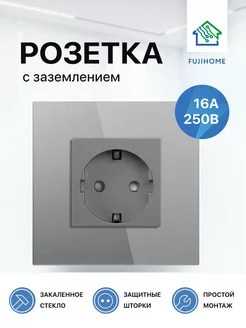 Розетка одинарная с заземление со стеклянной рамкой