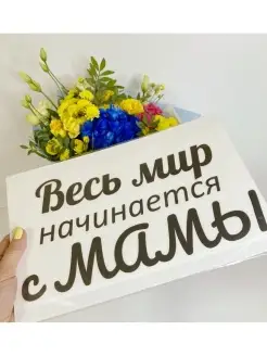 Весь мир начинается с мамы - наклейка на шар, коробку