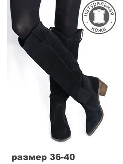 Сапоги казаки черные натуральная замша