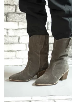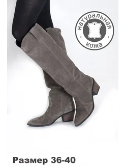 Сапоги казаки серые кожаные велюровые замшевые