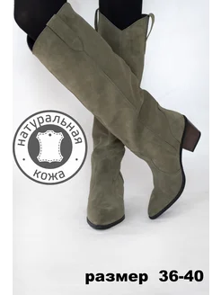 Сапоги казаки оливковые кожаные велюровые замшевые