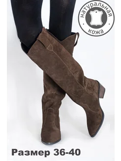 Сапоги казаки коричневые кожаные велюровые замшевые