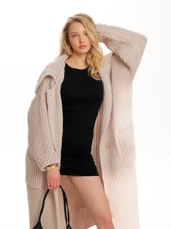 Кардиган с воротником длинный вязаный оверсайз на пуговицах