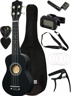 Черная укулеле 10 предметов, подарочный набор