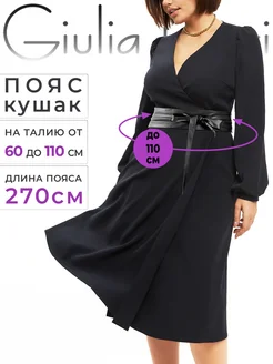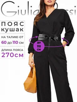Пояс-кушак из эко-кожи, широкий черный ремень