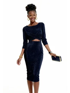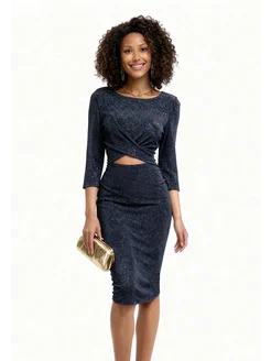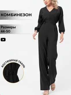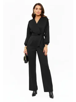 Комбинезон брючный вечерний с поясом и V-вырезом