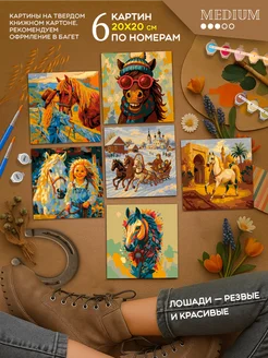 Мини набор картин по номерам Лошади 6 шт 20х20