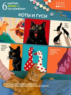 Мини набор картин по номерам Коты и гуси 6 шт 20х20