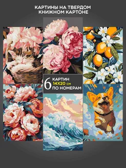 Мини набор картин по номерам Пионы, корги, котики 6 шт