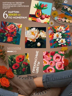 Мини набор картин по номерам Прекрасные цветы - 1 6 шт 20х20