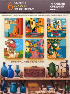 Мини набор картин по номерам Прекрасные пейзажи 6 шт 20х20