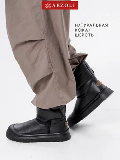 Зимние угги из натуральной кожи с мехом на толстой подошве