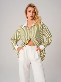 Рубашка в полоску офисная удлиненная хлопок