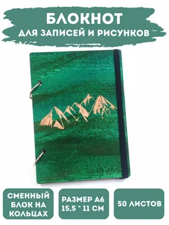 Деревянный блокнот "Горы", А6, 50 белых листов