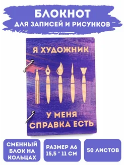 Деревянный блокнот "Я художник", А6, 50 белых листов