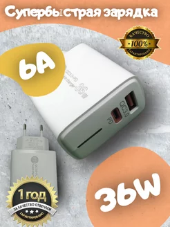 Быстрая зарядка 6А 36W с гарантией PD и QC 3.0