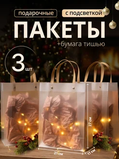 Пакеты подарочные прозрачные с гирляндой и тишью 3 шт